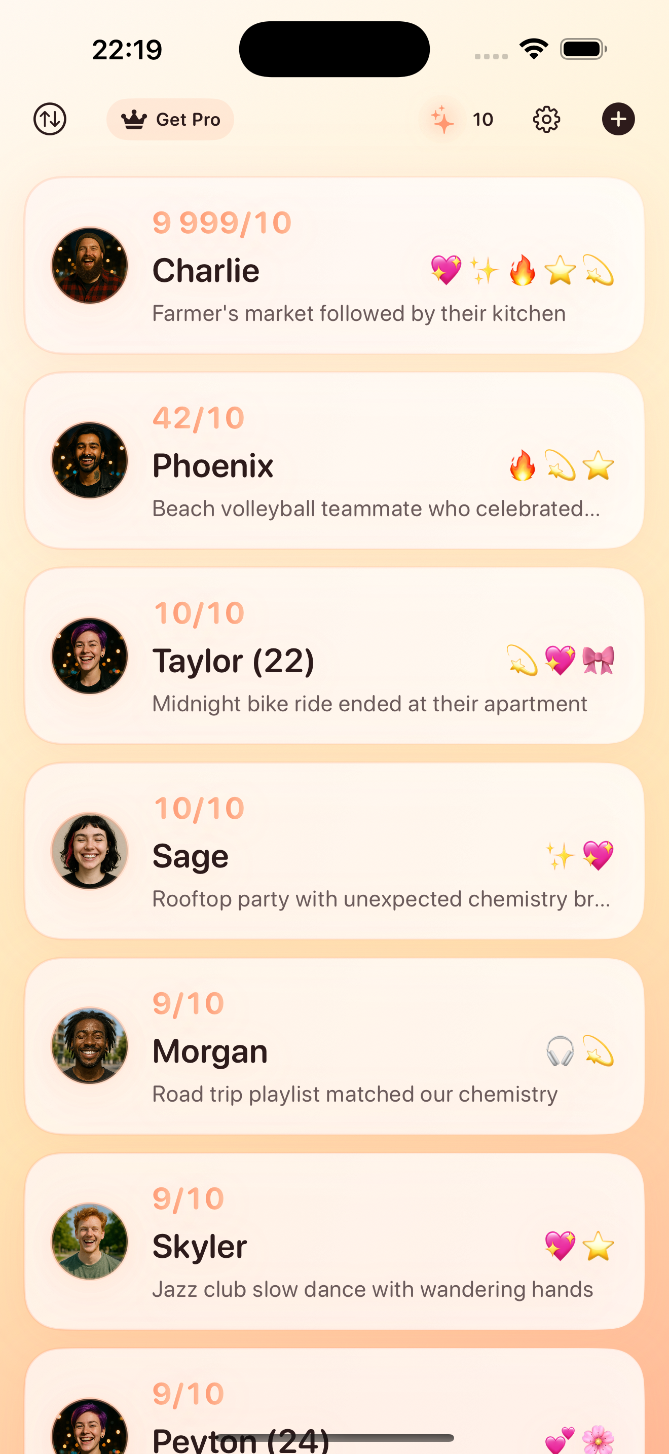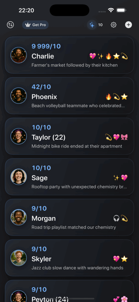 Score them 1-10, add emojis, write notes. Keep track of who was really worth it.